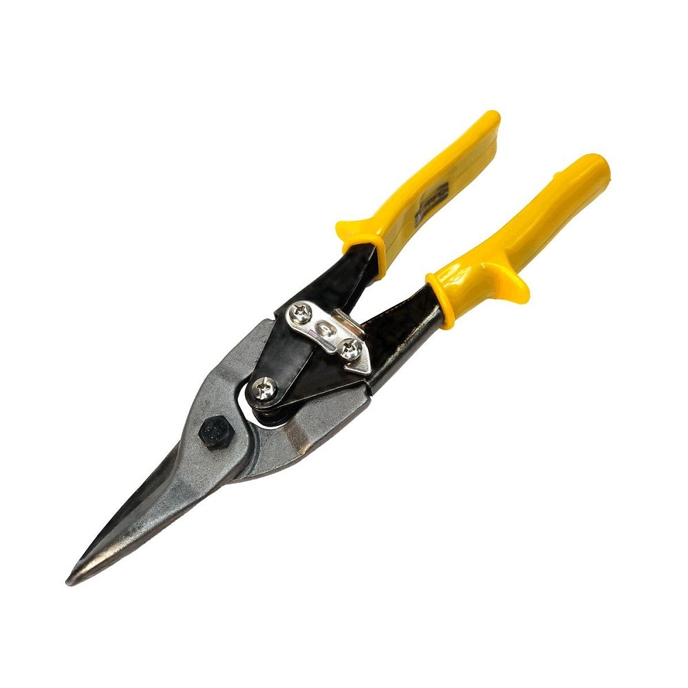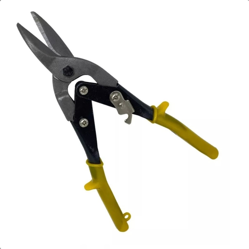 Tesoura tipo aviação para corte reta, equipada com trava. Sua leveza permite um corte fácil e preciso.